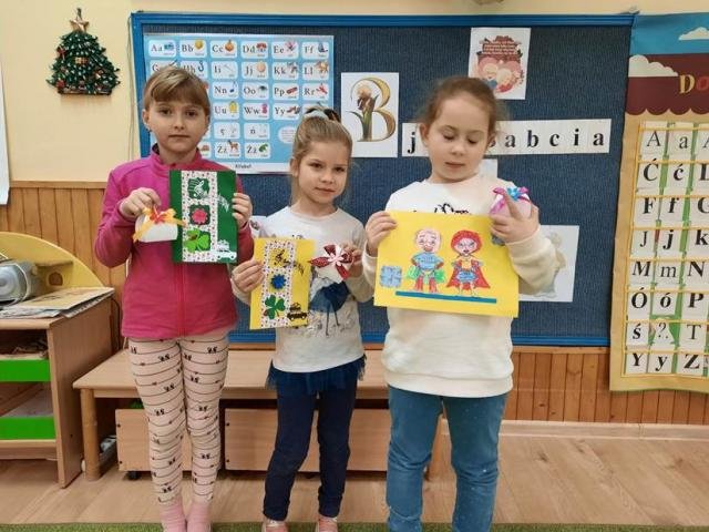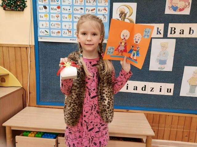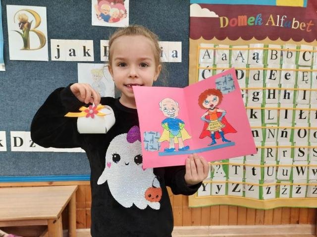 Z wielką radością przygotowały dla nich piękne upominki, piosenkę i wierszyk, w których wychwalają zalety swoich dziadków i życzą im zdrowia, uśmiechu i zadowolenia z wnucząt.