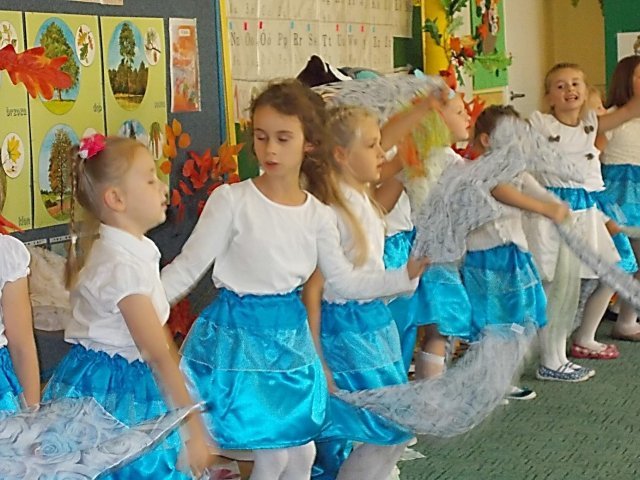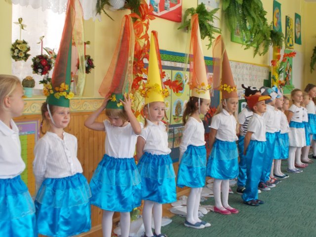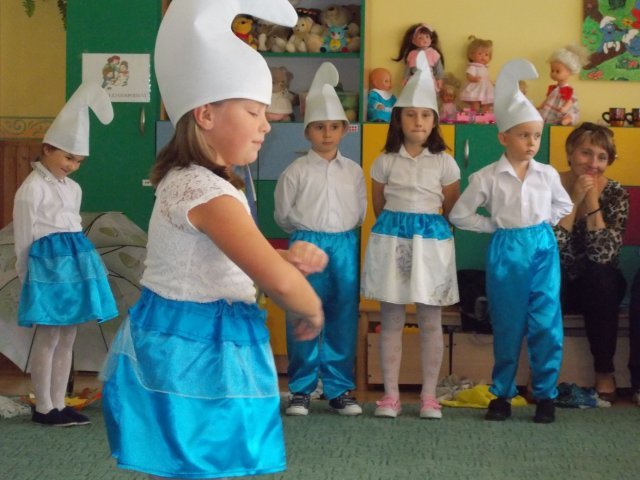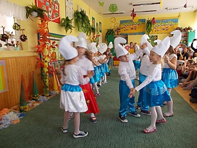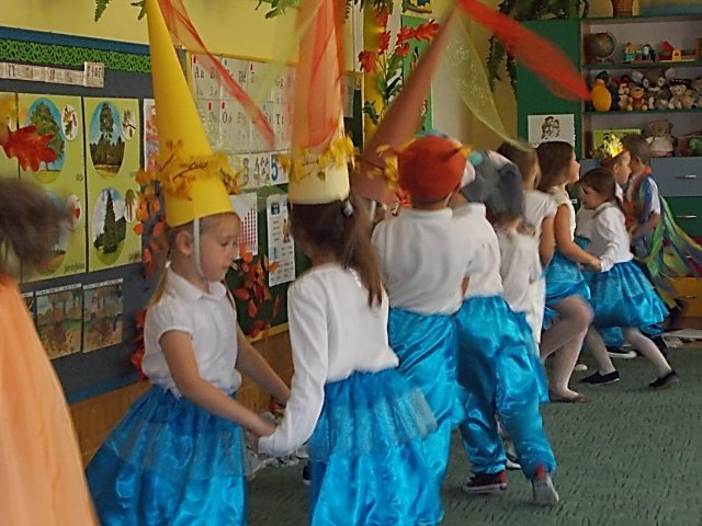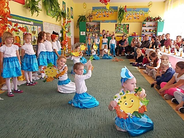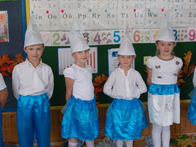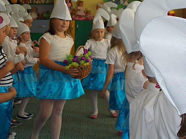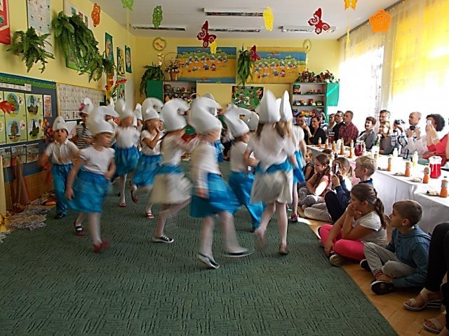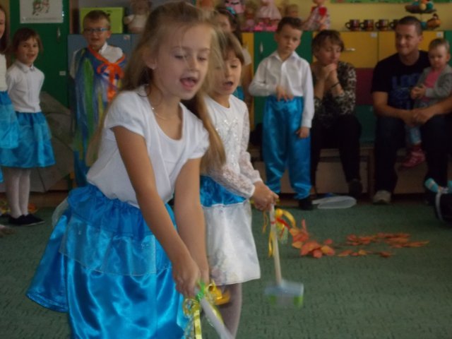 i powitały jesień. Na tę uroczystość przybyli Rodzice, starsze i młodsze rodzeństwo naszych „Smerfów” oraz nauczyciel