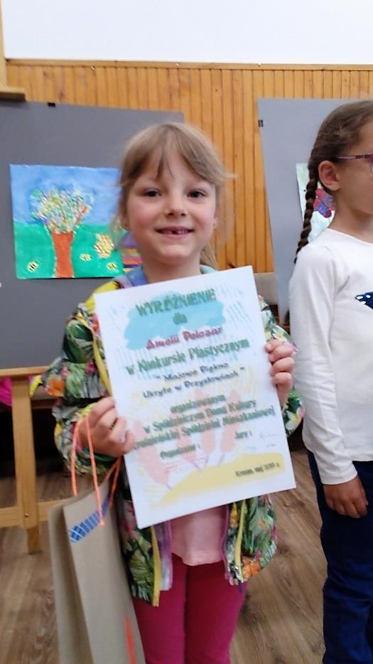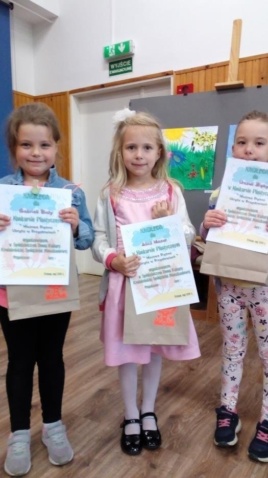 Finał konkursu plastycznego zorganizowanego przez Spółdzielczy Dom Kultury okazał się dla nas bardzo pomyślny. Wszystkie dzieci biorące udział w konkursie z grupy „Misie” oraz „Smerfy” otrzymały wyróżnienia i nagrody.