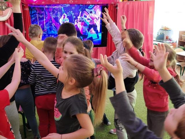 5 maja wszystkie przedszkolaki wzięły aktywny udział w multimedialnym przedstawieniu teatralnym przygotowanym