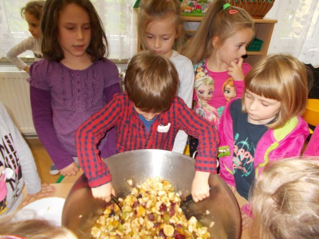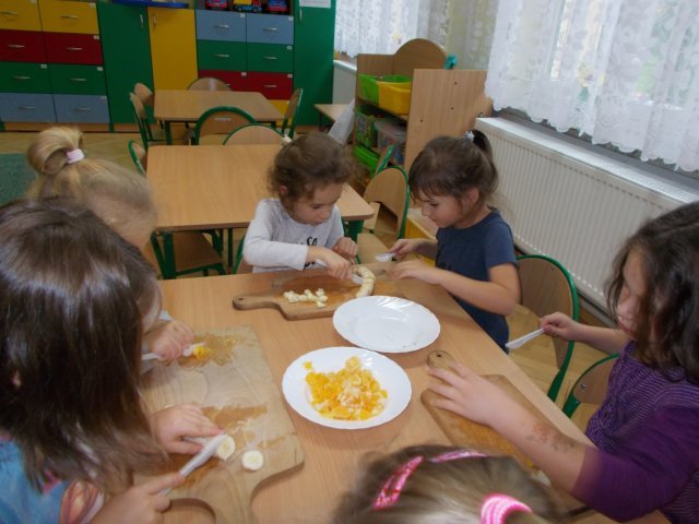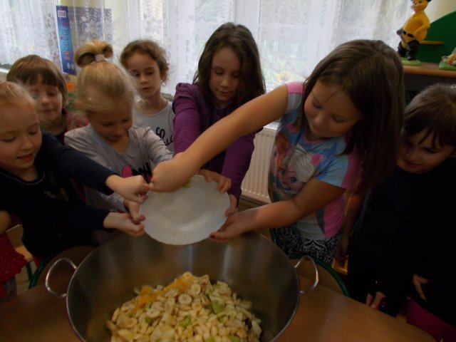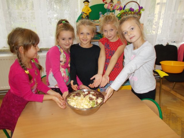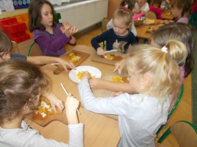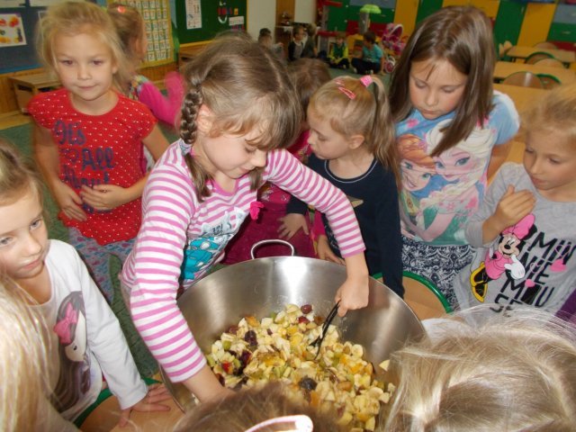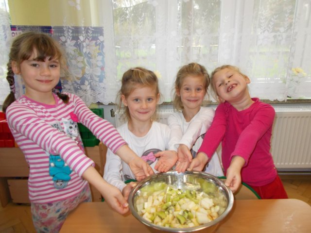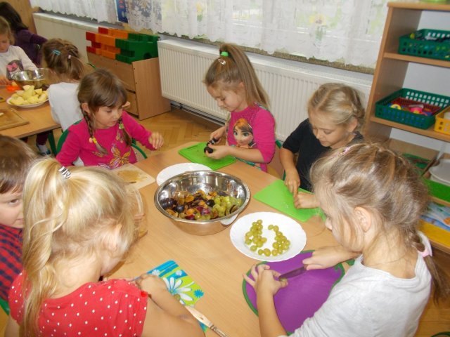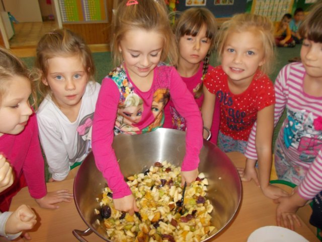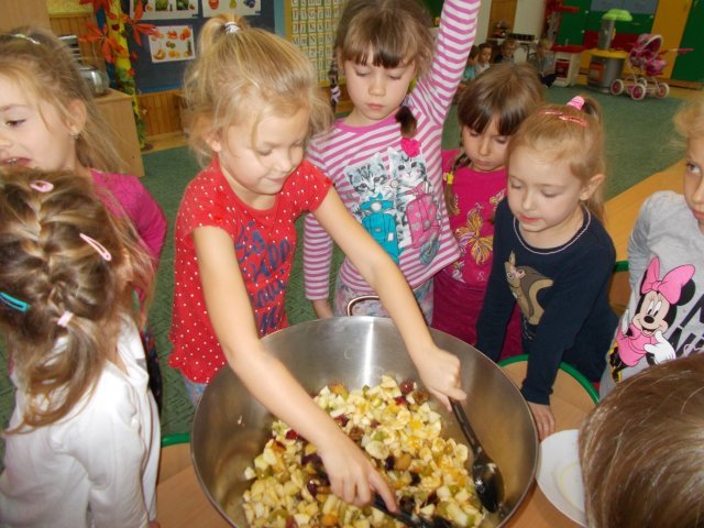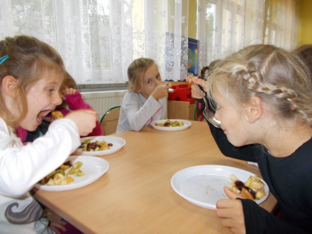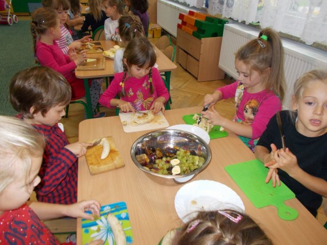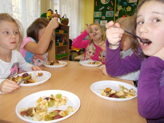 „Smerfy” preferują zdrowy styl odżywiania się. Dzisiaj zrobiły sałatkę owocową,